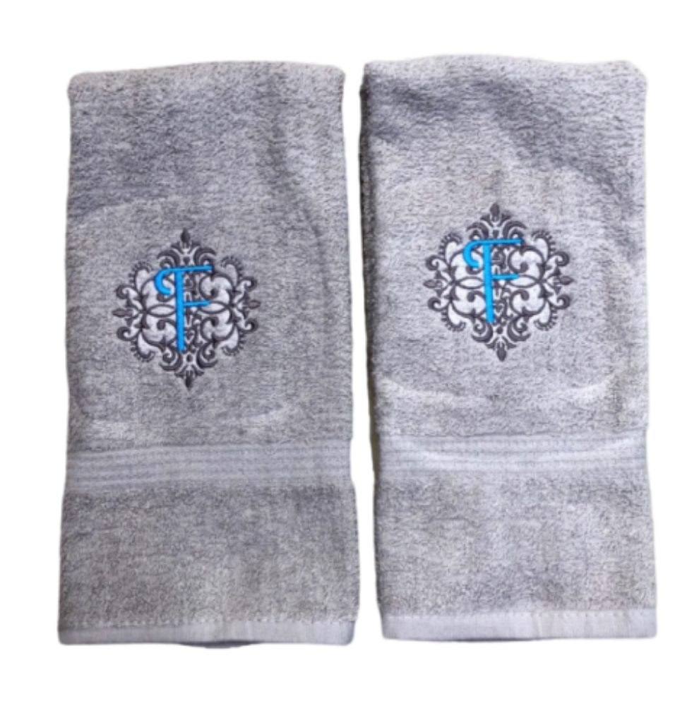 Embossed towels are classic and subtle to match any decor. There is nothing better than getting out of a refreshing shower or bath and reaching for a custom embroidered, super-soft, absorbent, and luxurious towel. Machine embroidery design with a single letter and outline. Thread will match towel color unless otherwise requested. Monograms are placed in the bottom centered of the towels for a trifold or no fold presentation.